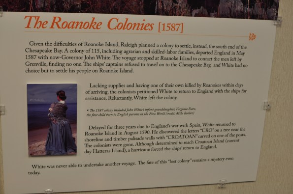 See, beginning several months ago, I was compiling lists of all the different places across the U.S. that I wanted to check out that were in addition to the bigger places I already had in mind (cities, national parks, etc.). And one day I saw this girl with a t-shirt that said “Roanoke” on it. Although the shirt was probably for a college in Virginia, it jogged my memory about the famous “Lost Colony” story I knew about since sixth grade social studies class with Mrs. Conard, and I added Roanoke Island, the site of the Lost Colony, to my list. If you need a refresher, here’s a quick summary from the book “Road Trip USA” by Jamie Jensen: