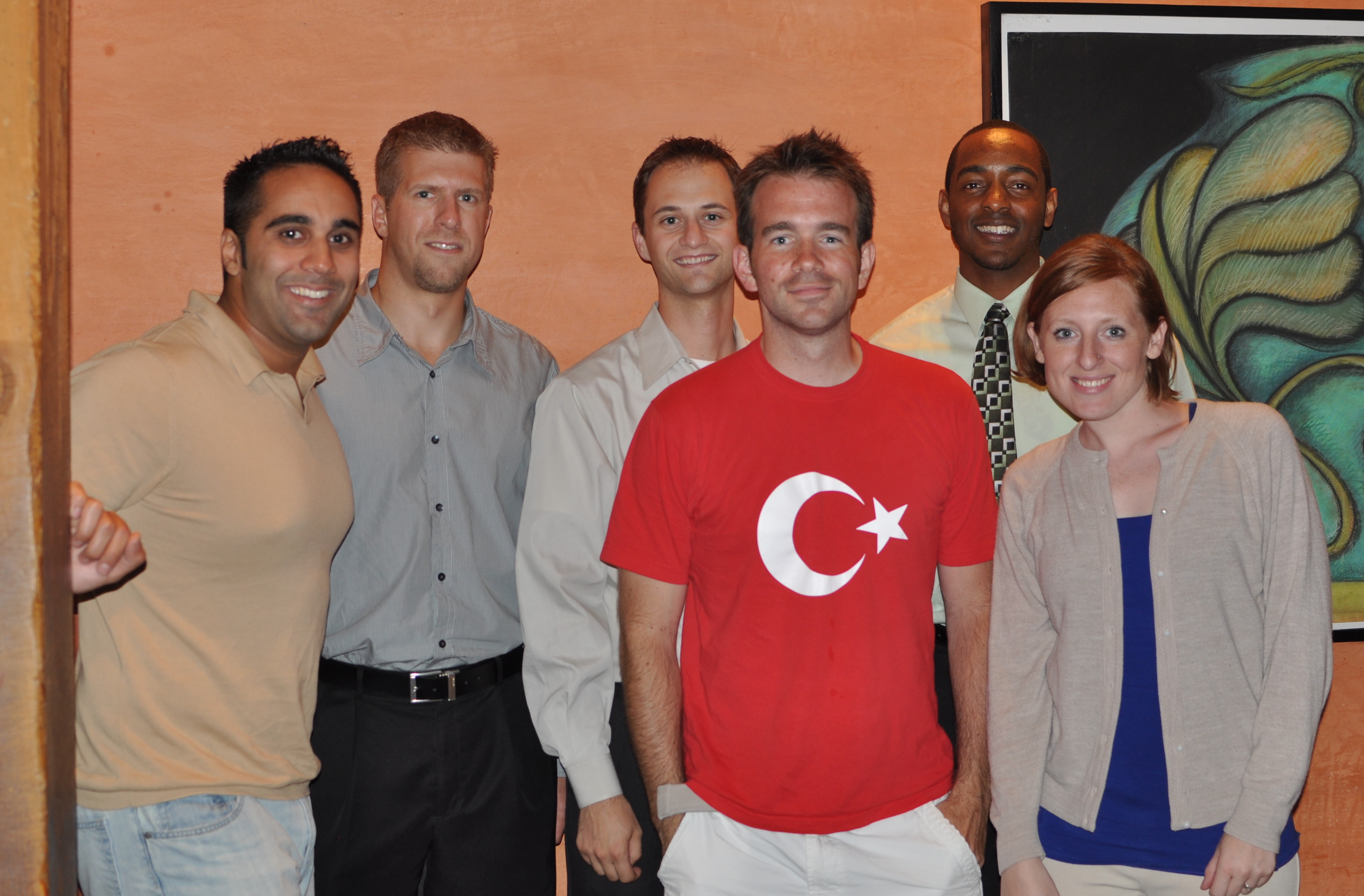 I need to add a few details about that group shot there. From left to right – Samir (aka the “Color Me Green” commenter on this site, big supporter of the trip); Dan – friend from back home in Endwell, haven’t seen him probably since high school; Rich – friend from Bethesda who, in a weird coincidence, has a friend who shares a house with my buddy Sam in NJ; me; Kenneth – always sharply dressed; and Kelly – new homeowner and my host in Ft. Worth.