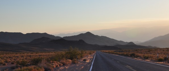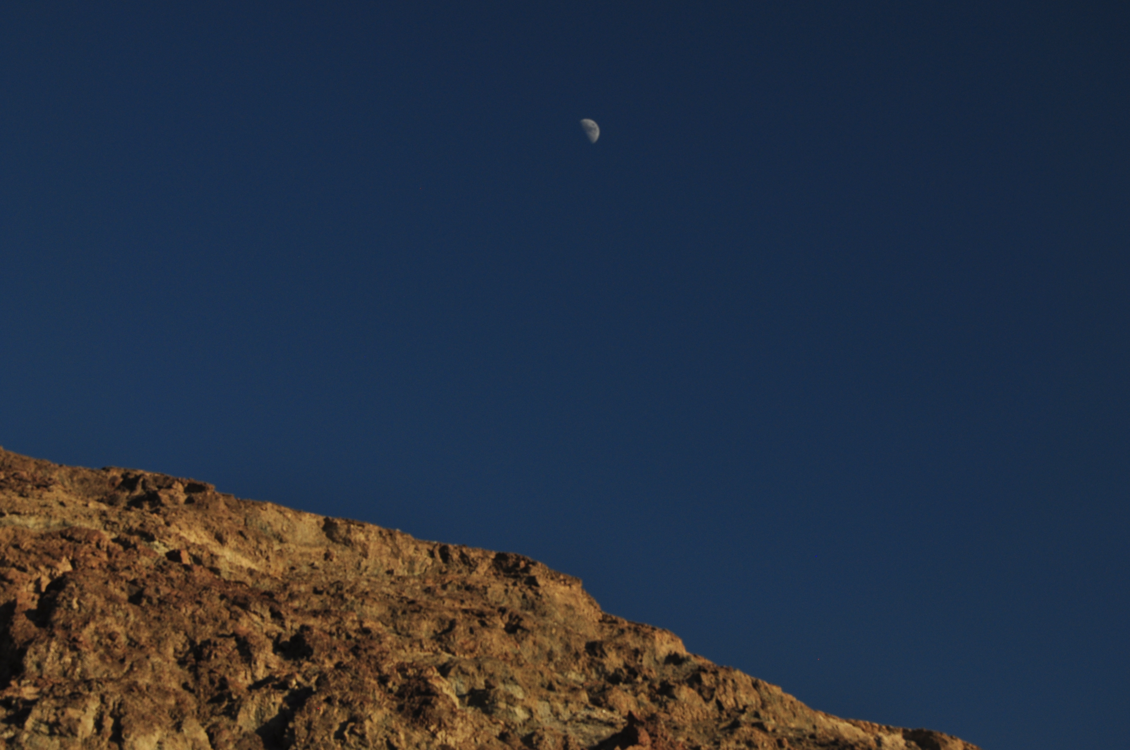 The timing worked out well for me. I left Death Valley just as the sun was going down and the first quarter moon lit the path south.