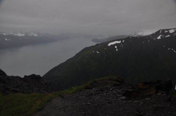 But our spirits remained high and we wanted to see how far we could make it, hoping the slick paths wouldn’t deter our route to the top.  There were some great views of Seward and Resurrection Bay not far into the hike, also.