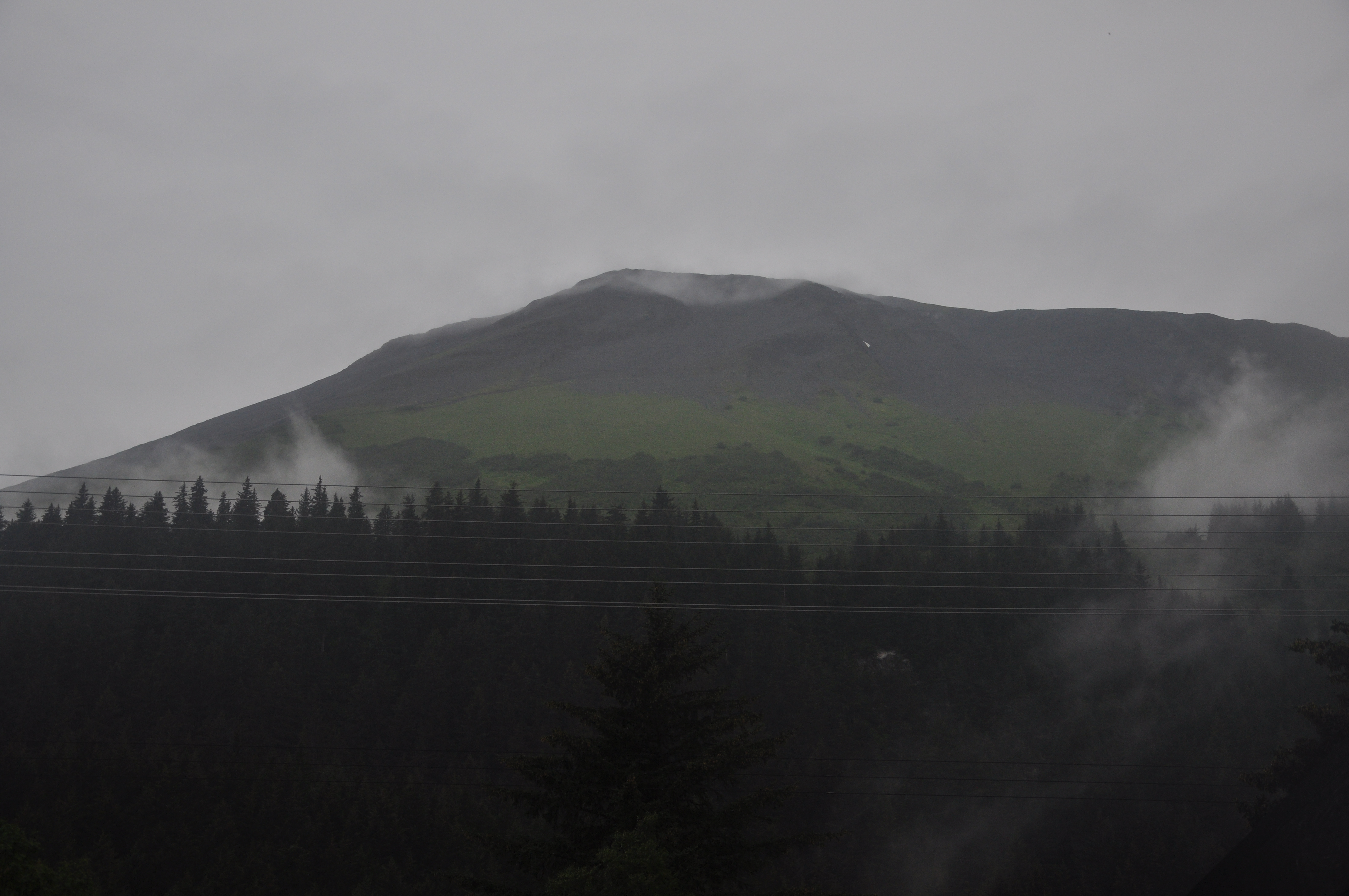 James had the day off, and had agreed to go hike a nearby mountain, Mount Marathon.  I met him at his house in the morning, and a few hours later we were on our way.  Although it was another overcast day, the forecast did not call for rain (at least not in the late morning when we were going to hike).  We were looking forward to a strenuous hike which promised some good views both along the way and at the peak. Also, James had completed the hike once before, so it was good to go with someone familiar with the route to the top (there were no markers or clearly-defined trails, like other hikes I’ve been on).