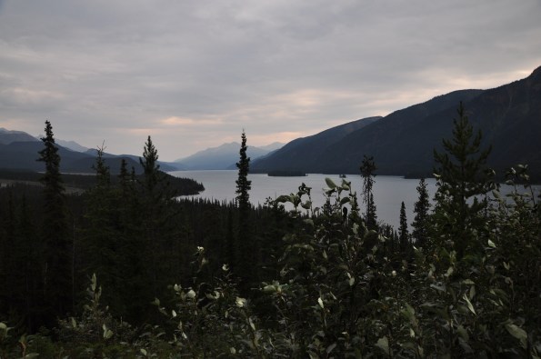 I passed by scenic Muncho Lake on the way. Very blue water, and a big lake, but vision was once again limited by the smoky haze in the air. Still nice to look at, though.